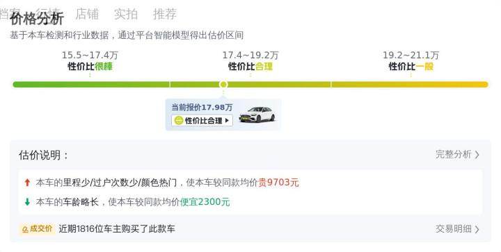 根据懂车帝的数据,这款车型的二手车市场行情大约在16.05万至19.16万之间。当然,具体的售价会受到车辆状况等因素的影响。关于用车成本方面,我们将通过图片的形式向您展示这辆车的用车成本详情。