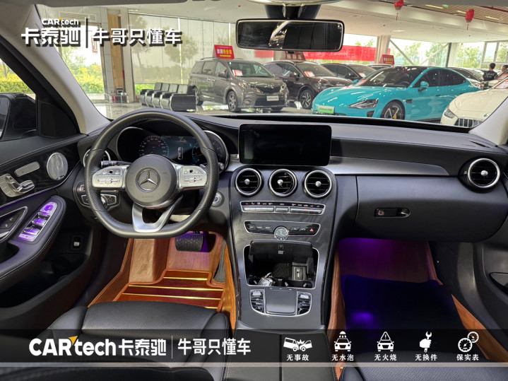 在细节设计上,这款奔驰C级同样展现出非凡的匠心。车内采用了大量软质材料包裹,不仅提升了触感,还营造出更为豪华的氛围。而那些精心设计的氛围灯,则能在夜晚为您带来温馨而又浪漫的驾驶环境。无论是内饰板上的精细纹路,还是按键的手感反馈,都体现出奔驰对品质的追求。