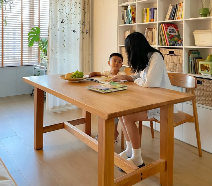 尤其是对于有孩子的家庭来说,桌子可以成为家长与孩子互动的核心空间,父母可以监督孩子的学习,家庭成员也能更好地交流和讨论。吃饭、玩游戏、看书都可以在同一空间进行,真正把生活空间最大化。
